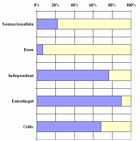 Tenint en compte, la bona predisposició natural de respostes en els entrevistats, obté les millors valoracions comparatives com: entretingut. Una valoració mitjana d’objectiu i, dins de la bona acceptació general, es considera menys independent i crític.