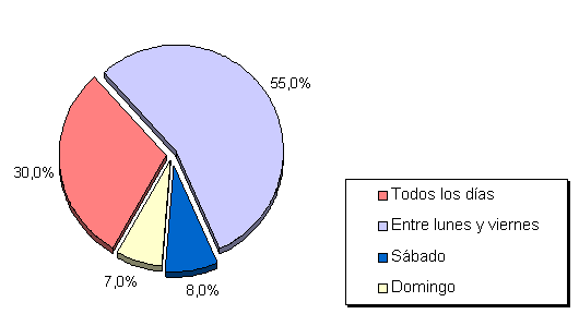 Entre las 18:00 y las 22:00 horas de días laborales. |