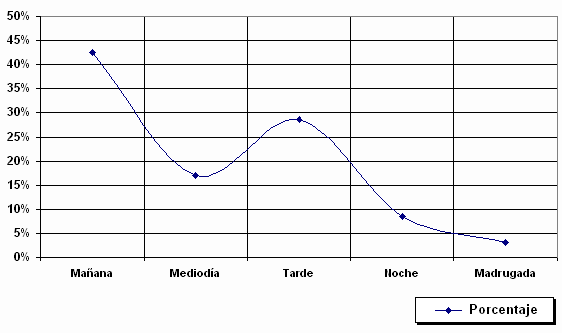 Las crestas de mayor audiencia se sitúan por la mañana, con un 43 por ciento. Por la tarde, también presenta un seguimiento importante, característico de una audiencia joven, con una acumulación del 30 por ciento. La audiencia nocturna es importante.